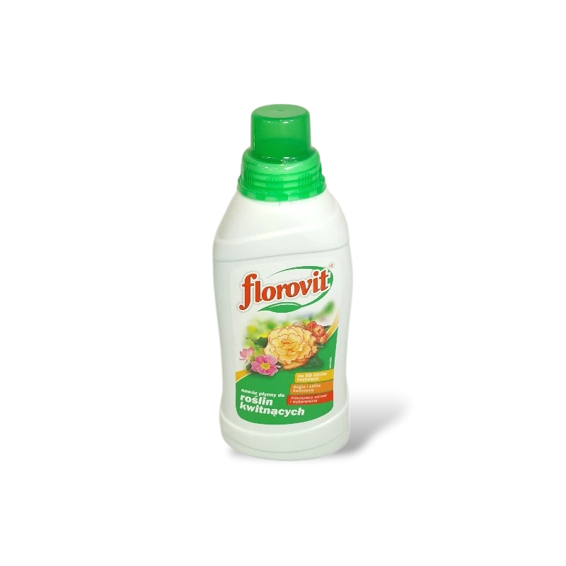 Florovit nawóz do roślin kwitnących to płynny nawóz przeznaczony do regularnego dokarmiania roślin ozdobnych kwitnących, uprawianych w domu, na balkonie i tarasie. Odpowiednio dobrany skład zapewnia roślinom prawidłowy rozwój oraz sprzyja obfitemu i długotrwałemu kwitnieniu.