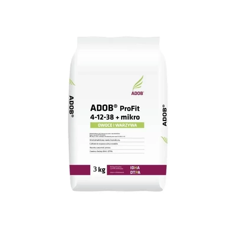 ADOB® ProFit 4-12-38 + mikro to wszechstronny nawóz, który kompleksowo wspiera zdrowy wzrost roślin, zapewniając optymalne zaopatrzenie w składniki odżywcze i wspomagając uzyskanie wysokiej jakości plonów.